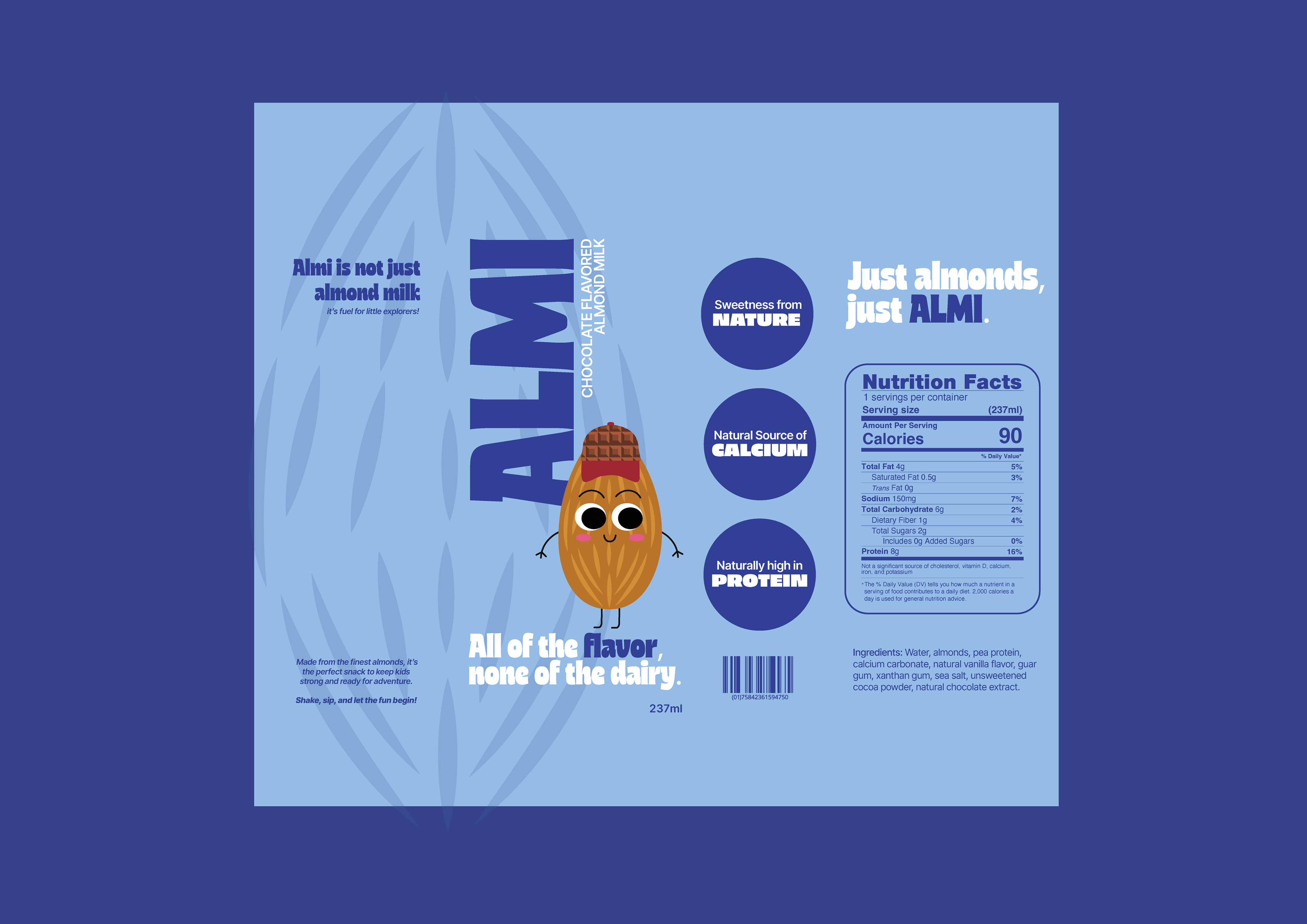 ALMI is a plant-based beverage brand created for mass consumption, with a focus on playful, family-friendly design.